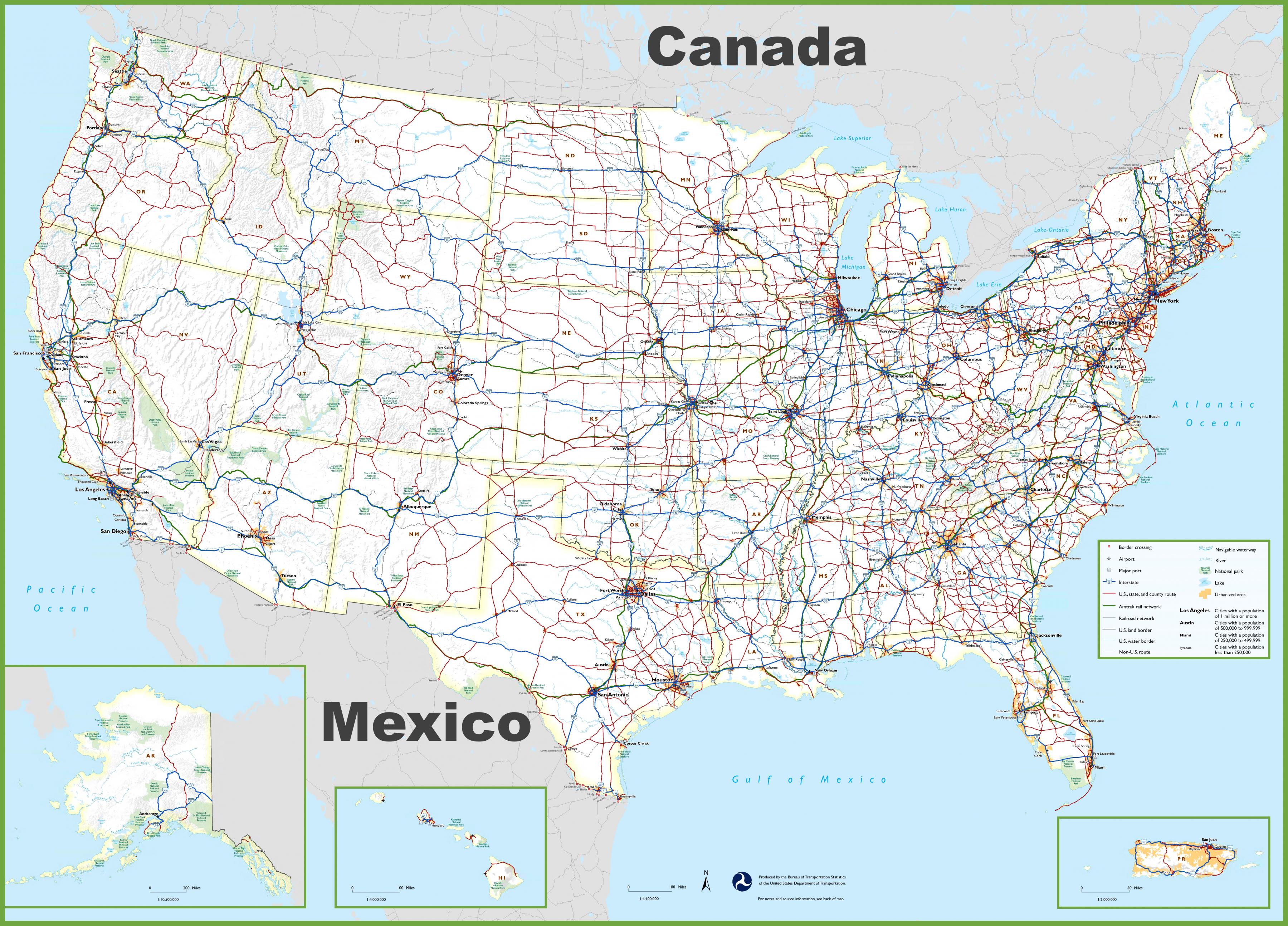 États-unis des transports de la carte. États-unis des transports de la carte (Amérique du Nord - Amérique) à imprimer. États-unis des transports de la carte (Amérique du Nord - Amérique) à télécharger.